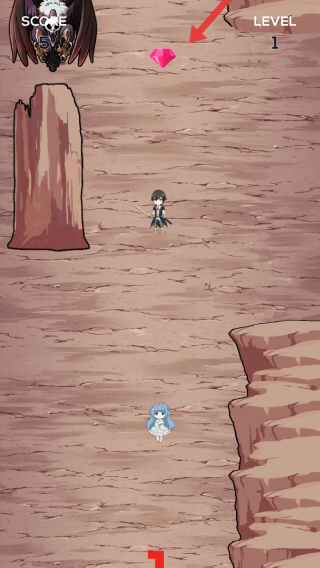 2、进入荒漠的场景中,需要操控角色拾取箭头标记的粉色宝石,还要注意绕开左边的障碍物。