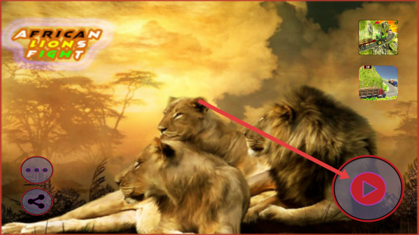 1、在游戏启动页,点击右侧播放按钮,进入《African-Lions-Fight》,开启非洲狮格斗之旅。