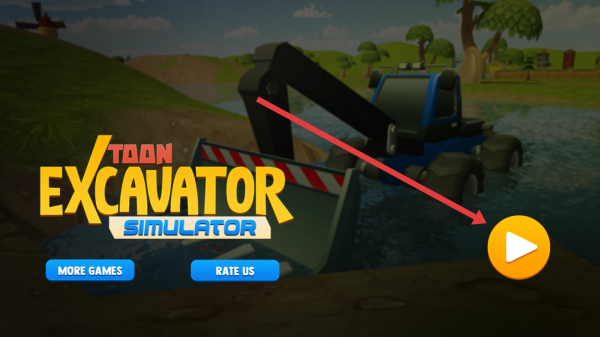 1、启动页点击播放按钮,进入《Toon-Excavator-Simulator》,准备操控卡通挖掘机,开启模拟驾驶挑战。