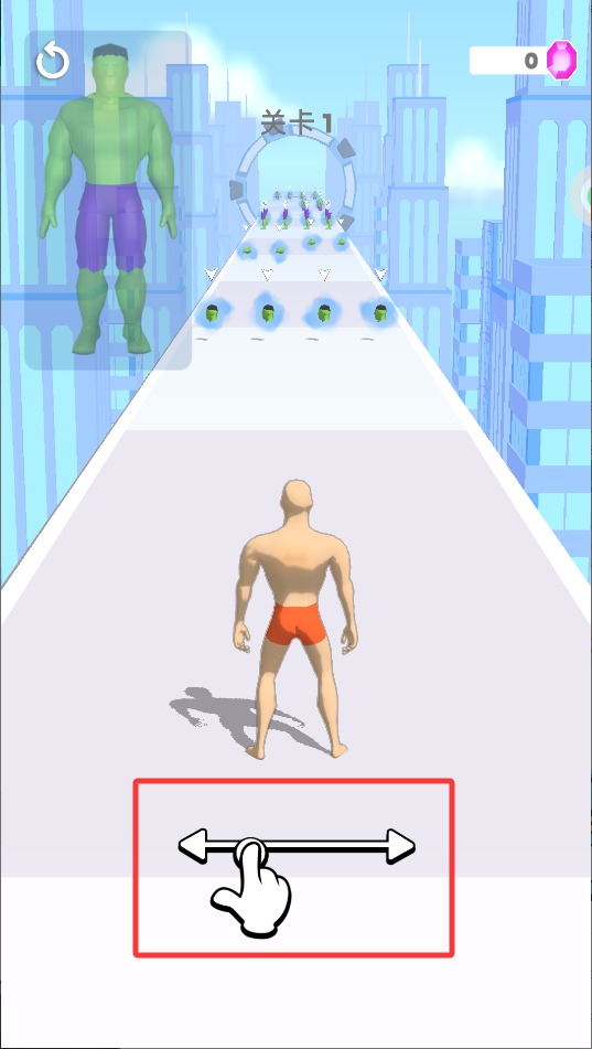 2、手指在屏幕上左右滑动控制方向,往上划是跳跃躲障碍,往下划能滑铲穿过低矮路段。