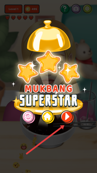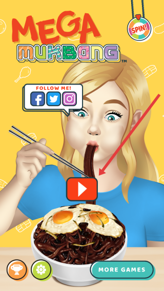 1、在启动页点击播放按钮,进入《MEGA-MUKBANG》,开始美食吃播挑战,准备操控角色吃炸酱面。