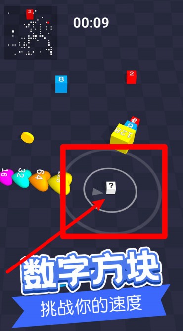 2.收集合并成长:收集路上的数字方块会不断增长队伍长度,方块突袭鼓励玩家善用路线管理和合成判断,逐步向2048进发。