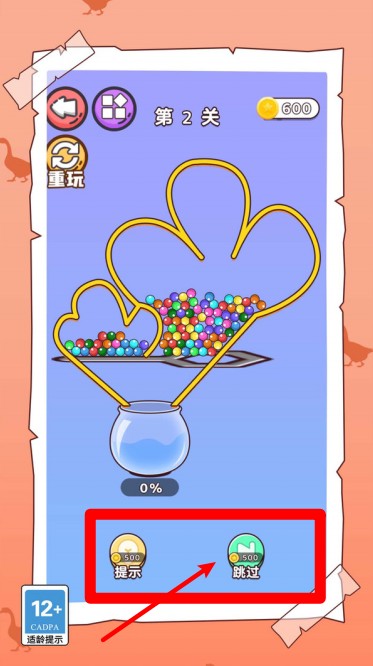 1.遇到卡关时可点击提示或跳过选项,消耗金币即可触发功能,这关不简单支持多种通关方式让玩家轻松过关不受挫。