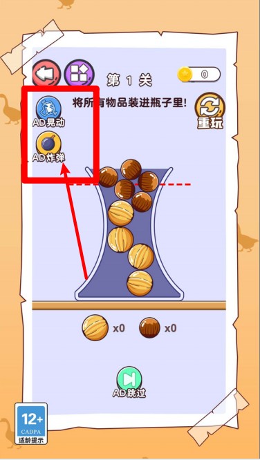 2.部分关卡提供特殊道具如“晃动”或“炸弹”功能,点击广告按钮即可激活,这关不简单融合策略与操作让闯关过程更灵活有趣。