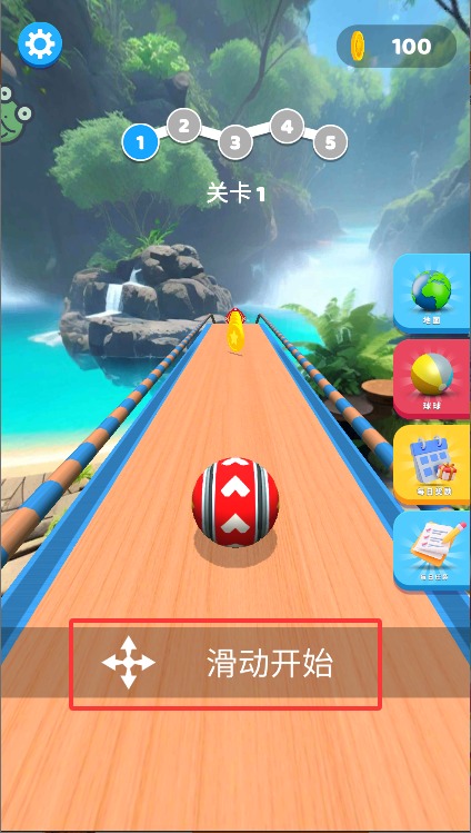 2、通过手指在屏幕上左右滑动控制圆球移动方向,注意避开赛道上的陷阱和缺口,保持平衡是通关的关键。