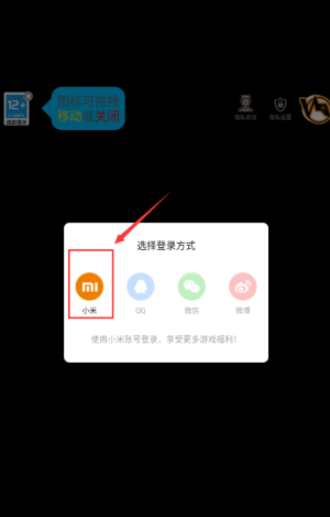1、点击小米图标,使用小米账号登录游戏。