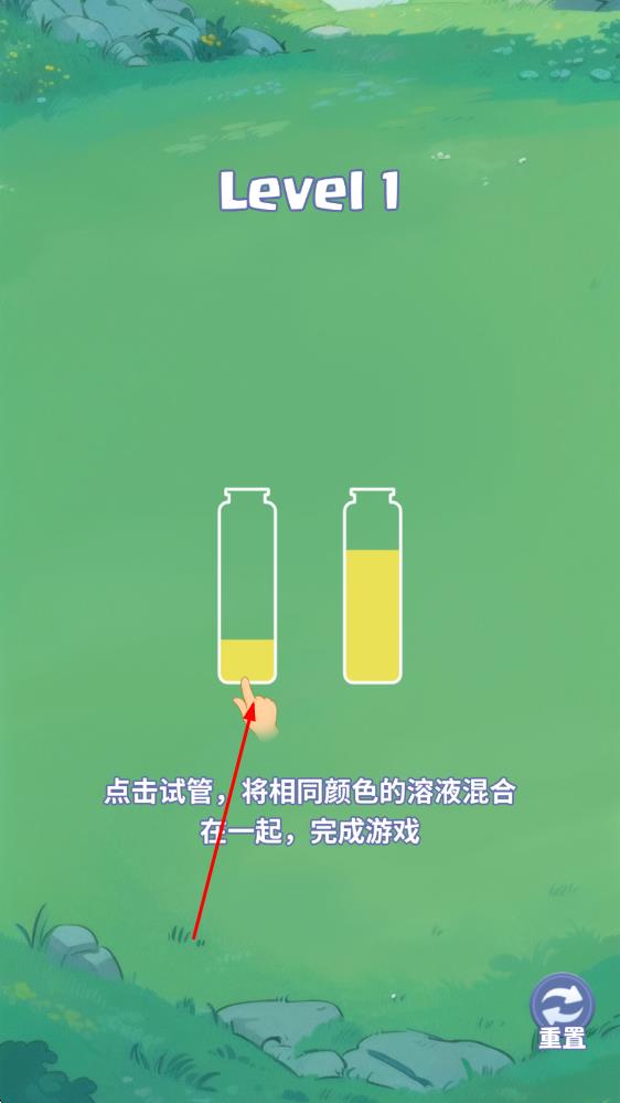 2、操作时,点击选中水管,再点击目标水桶,将液体倒入,遵循同色液体归置原则,逐步完成当前关卡的排序任务。