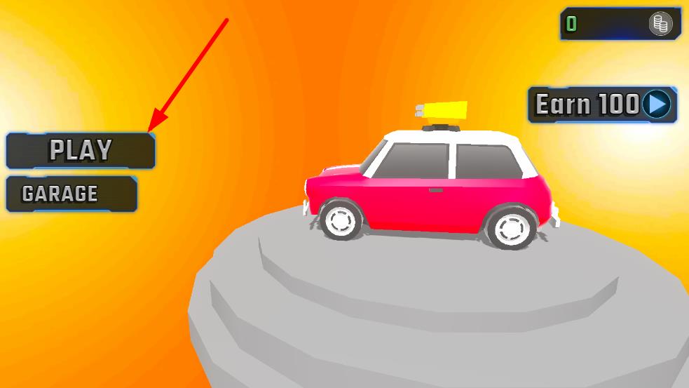1、进入初始页面,点击“PLAY”开始,操控汽车在赛场移动,熟悉方向、加速等操作,并且尝试撞击足球,开启竞赛流程。