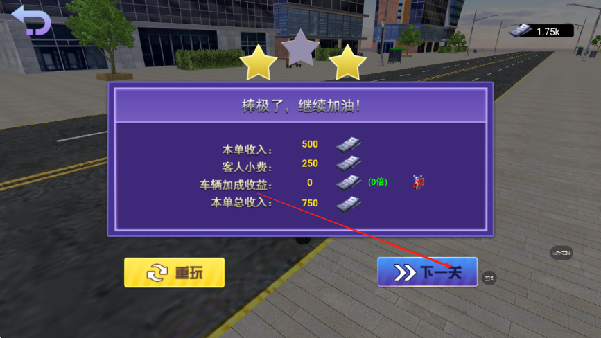 3、成功将外卖送到顾客手中后,获得任务奖励,可用于兑换加速道具或解锁赛车,屏幕显示送达时间与评分,为下一次送货积累经验。