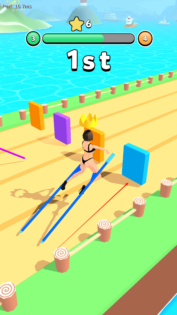 3、保持第一名的同时,越过前方的障碍,如果不慎掉落倒下,则会复活到刚刚倒下的位置,继续前进。