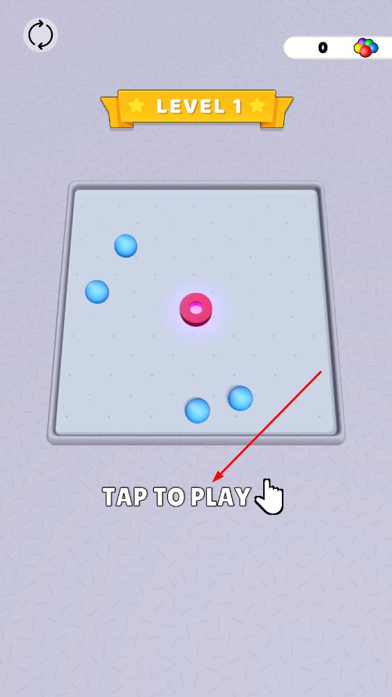 1、查看画面中球球的分布情况,掌握基础击打操作,试着击中第一个球球。