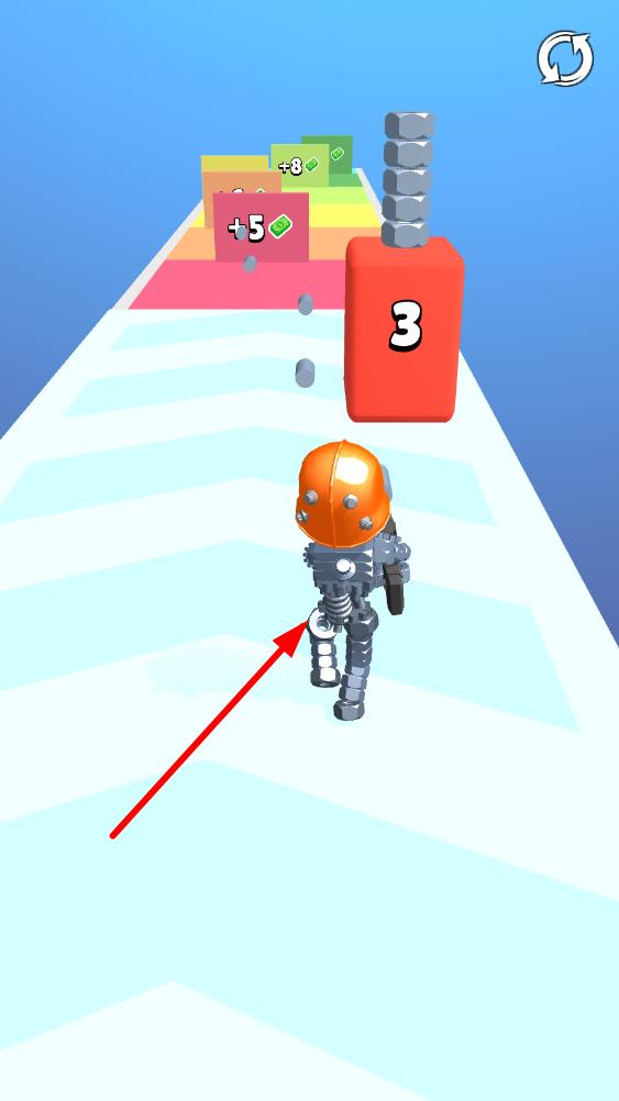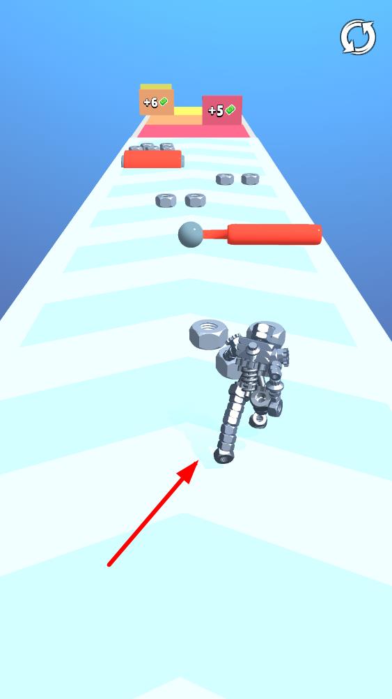 1、机器人组建机制:收集的废金属会自动组建成机器人越高大,闯关后获得的奖励越丰厚,这种成长式设定激励玩家积极收集,让跑酷过程与角色强化紧密结合,增强目标感。