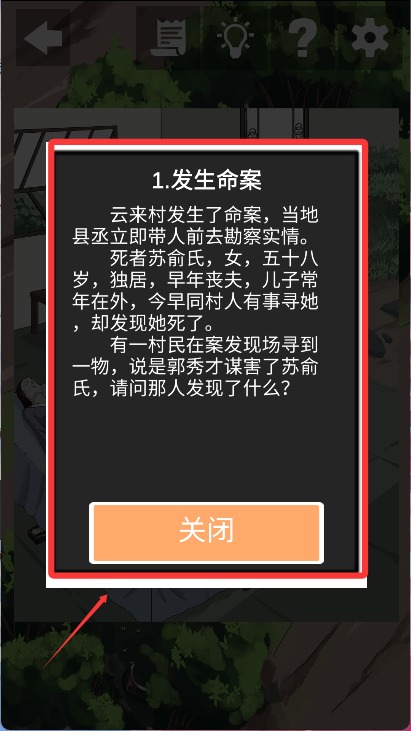 4、看完剧情后我们需要在场景内找到正确的道具破解案件。