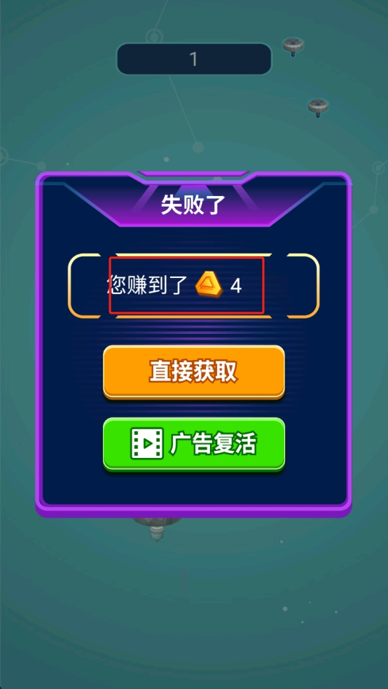 3、若关卡失败,界面会显示本局赚取的金币数量,点击直接获取即可,积累金币用于强化武器或解锁新内容。