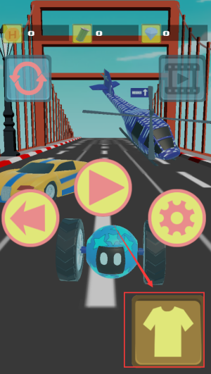 1、点击黄色T恤图标,更换球形角色外观皮肤。