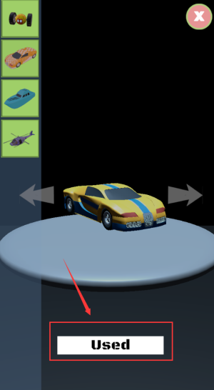 3、点击used按钮,确认使用当前车辆部件。