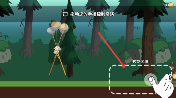1、进入到关卡后,观察并按照提示,拖动控制区域,操控高跷羊移动,熟悉操作,开启森林冒险。