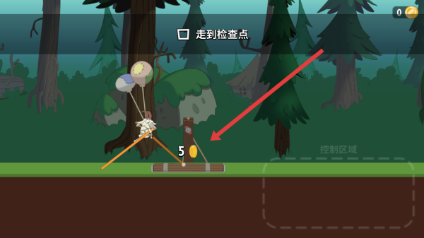 2、沿路径前行,瞄准检查点,需要平稳移动高跷羊,经过检查点时收集金币,抵达目标位置。