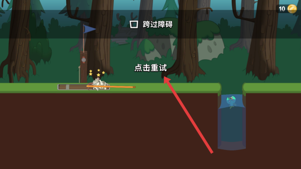 3、若未跨过障碍失败,触碰屏幕上的点击重试,调整操作,重新挑战尝试跨越,完成关卡挑战。