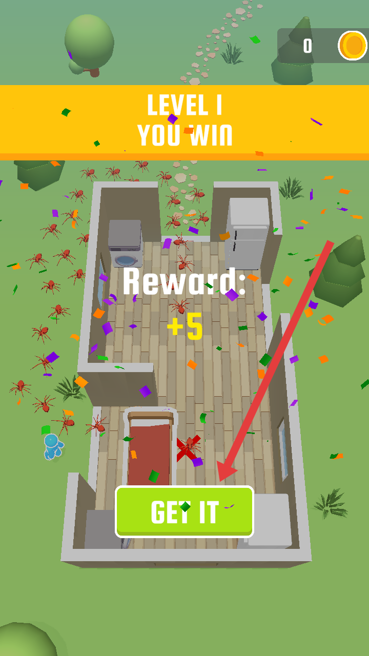 1、帮助角色躲避可怕生物则关卡胜利,可以点击绿色GET IT的按钮,领取关卡奖励,进入下一关。