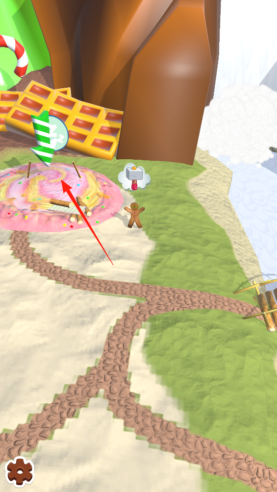 1、进入甜蜜公司,玩家点击箭头指向的粉色区域移动角色,触发建造互动,准备开启在甜蜜世界里的建造冒险,用工具打造专属建筑,探索奇妙关卡。