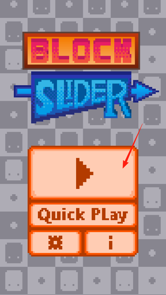 1、打开滑动块儿,看到BLOCK SLIDER标题界面,点击播放按钮进入关卡,选Quick Play直接开玩,通过移动方块,帮蓝色物件拿到宝石,开启复古像素风的解谜之旅。