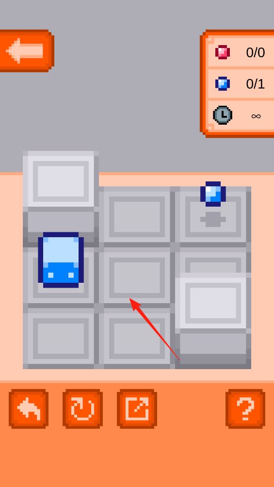 2、进入第一关,有蓝色容器、白色方块和蓝色宝石,拖动蓝色物件,绕过方块,往宝石方向移动,要规划路径,避开障碍,让容器精准拿到宝石,每一步滑动都要着重考虑。