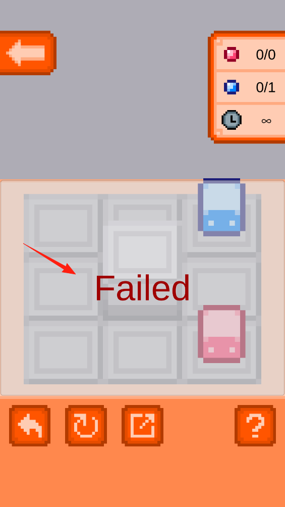 3、滑动方块时没规划好,容器碰到其他方块,界面显示Failed,别慌,点击下方重置按钮,重新调整滑动路线,失败是解谜的常态,每次重来都能换种思路,继续尝试让容器拿到宝石。