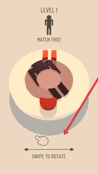 1、进入到游戏后,在Level-1中,按提示SWIPE-TO-ROTATE,滑动旋转部件,尝试匹配目标形状。