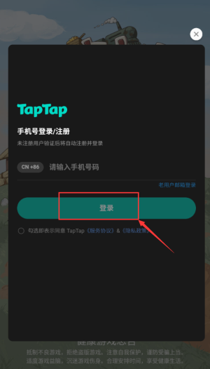 1、点击蓝绿色按钮,使用TapTap账号登录游戏。