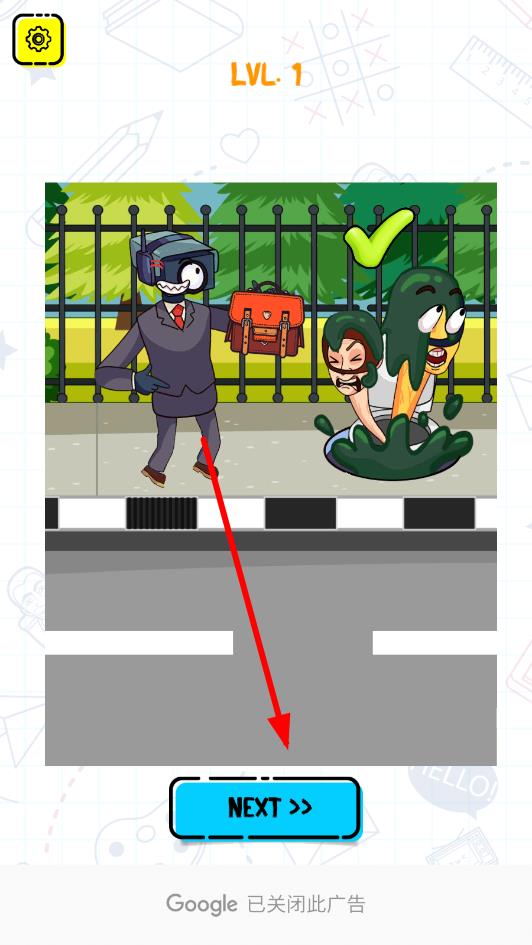 3、关卡进度解锁:成功破解当前关卡,点击“NEXT”解锁新关卡、搞怪角色与场景,持续拓展恶搞解密内容,挑战更高难度无厘头谜题。