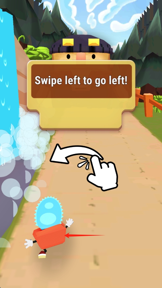 3、操作指引页,按提示向左滑动屏幕,控制角色向左移动,开始冒险,向左滑动移动人物。