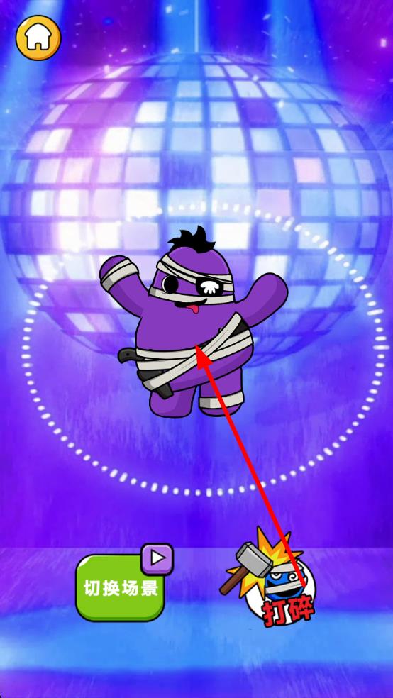3、完成造型后,可切换场景展示,点击“打碎”开启趣味互动;也可保存成果,进入新关卡,持续创作专属的新形象。