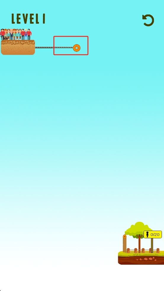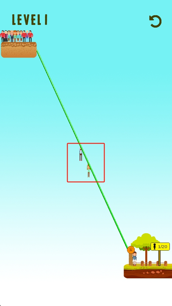 1、游玩开始前我们先观察绳索上的橙色圆环,点击拖动调整其位置,规划绳索路径,确保下方人群能安全滑向目标区域。