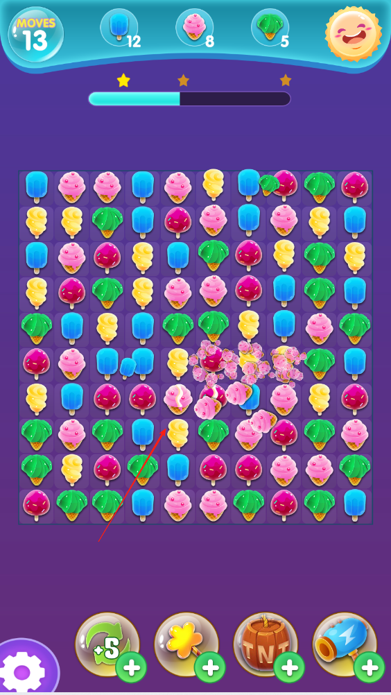 2、障碍优先处理:遇到冰块、巧克力等障碍物时,优先消除其周围糖果打破障碍,避免障碍物占据棋盘空间,影响后续糖果移动与消除。