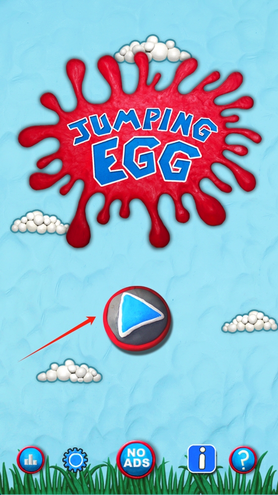 1、在Jumping-Egg启动页,点击播放按钮,开启彩蛋跳跃闯关之旅,点击按钮开始游戏。