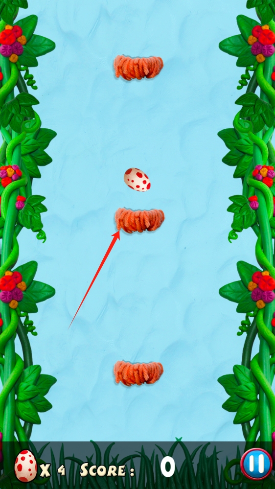 1、点击跳跃得分:找到合适时间,用手指点击屏幕任意位置,鸡蛋会跳起,落入篮筐即可得分,未落入则失去一条生命,生命值耗尽游戏结束。