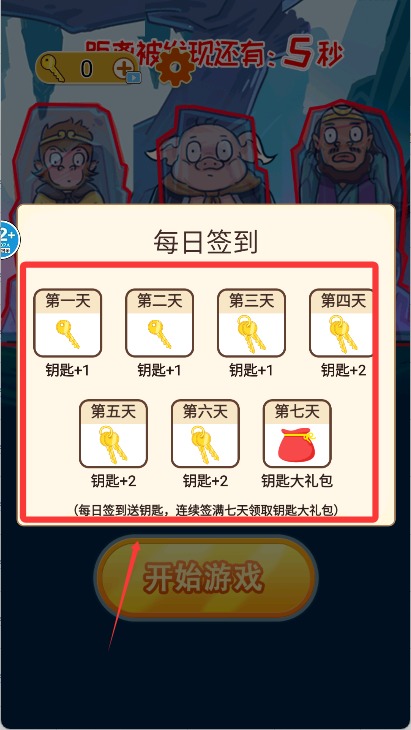 1、每天首次进入游戏都可以进行一次每日签到,点击即可。