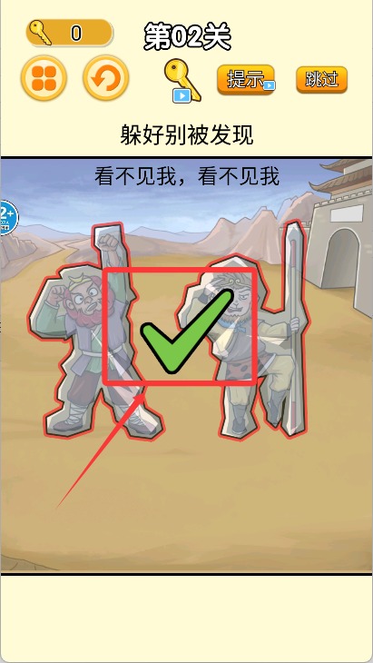4、躲好后不被发现即可成功通过,解锁下一关。