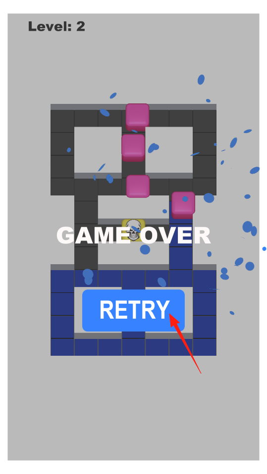 3、挑战失败后,出现GAME OVER界面,点击RETRY按钮,重新开始第二关挑战,之前的失败经历可转化为经验,调整方块移动策略,比如改变移动顺序规划更安全路径。