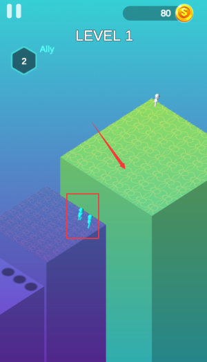 2、控制红框内蓝色盟友,移动到绿色平台集合。