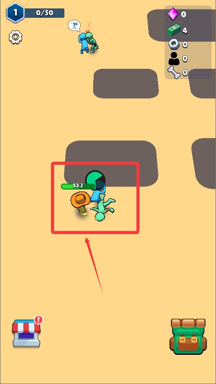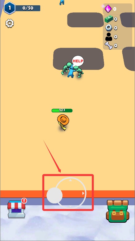 1、进入游戏后滑动屏幕下方摇杆即可移动角色。