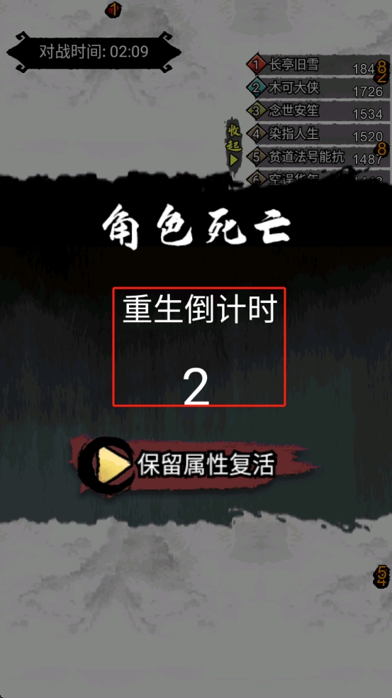 3、角色死亡后可等待重生倒计时复活,或点击保留属性复活快速回归战斗,复活后利用技能衔接继续对战。