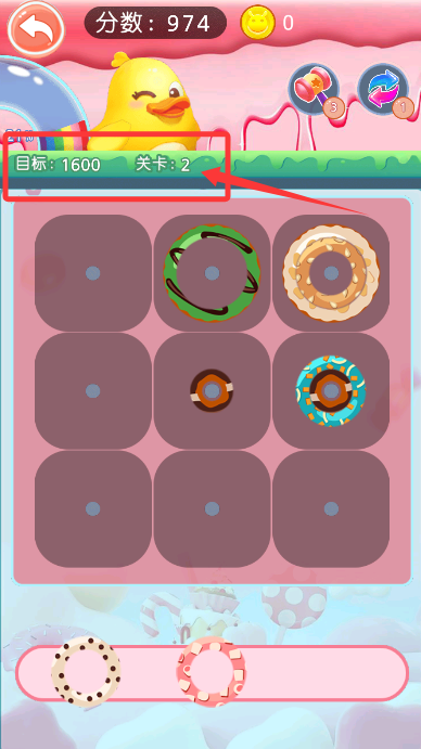 2、将三个一样的甜甜圈连成一线即可消除,获得相应积分奖励。