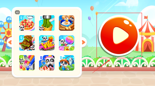 1、点击红色播放按钮,进入美食主题游戏选择界面。