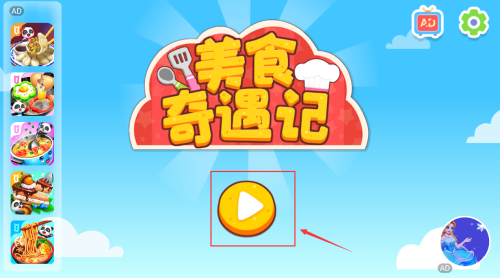 3、点击黄色播放按钮,启动美食奇遇记烹饪游戏。