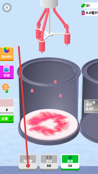 1、进入游戏后,要马上点击颜料罐上点击加速,加快颜料的生成,快速点击,积累基础颜料材料。