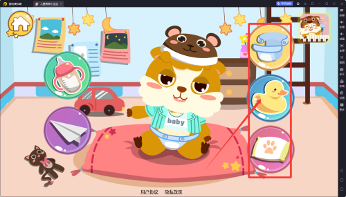 2、亲子互动游戏环节,设置多种互动游戏如躲猫猫、玩具互动等,增进玩家与虚拟宝宝之间的情感交流和默契。