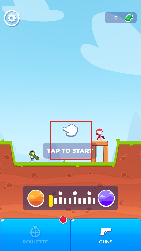 1、开局先点击主界面的武器库查看火箭筒属性,再点关卡列表了解每关目标,选好关卡点击下方按钮即可开启挑战。