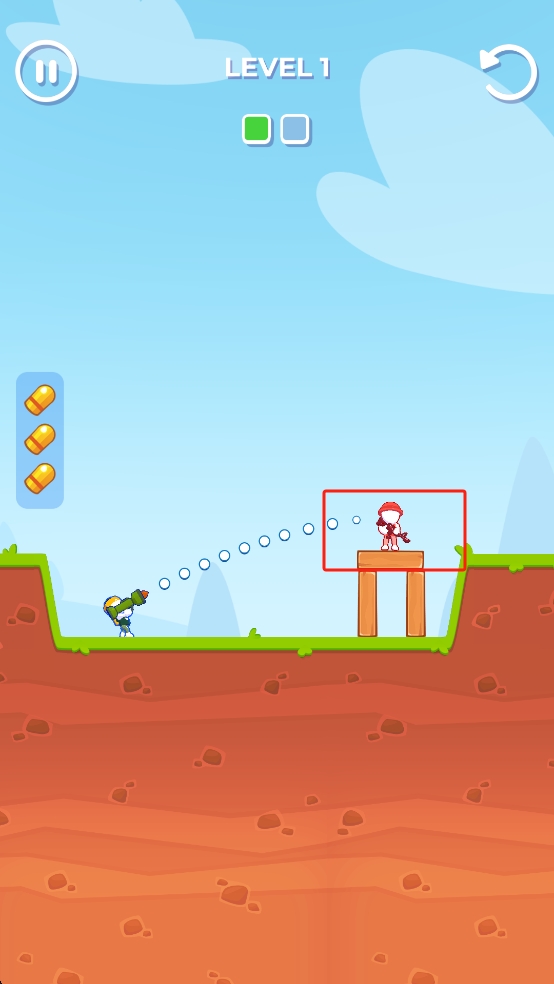 1、瞄准发射环节:观察敌方设施的位置与结构,拖动屏幕控制火箭筒的发射角度,通过右侧力度条掌握发射强度,松开后炮弹沿轨迹飞行,力求精准命中目标。